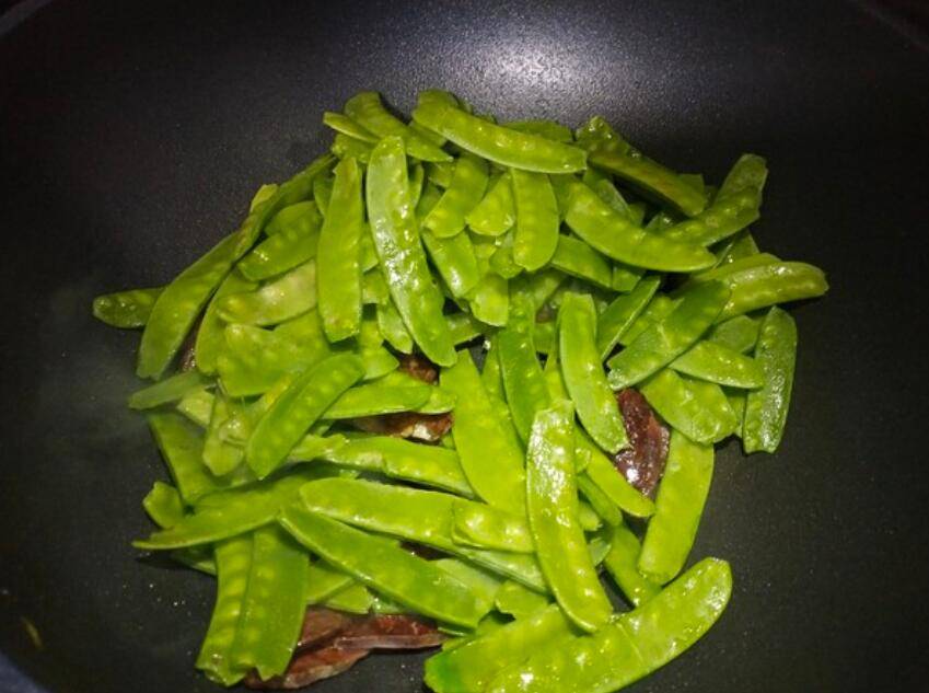 4、加入洗净的菜豌豆。