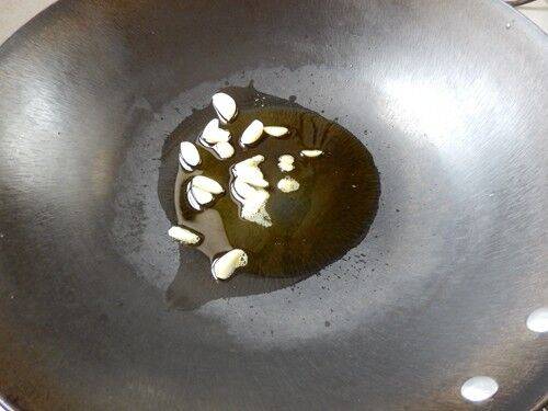 6、锅中入油,炒香蒜片。