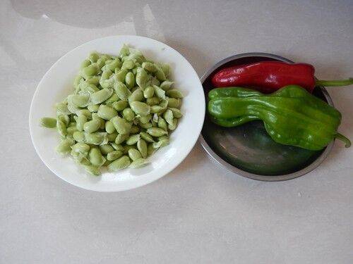 1、食材准备:毛豆150克、大蒜、精盐、生抽、菜籽油、青椒、红椒各适量。