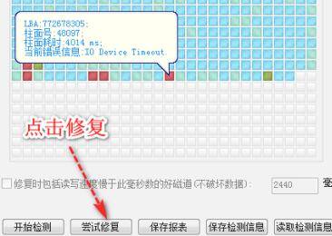 6、点击尝试修复,如果要立即尝试修复刚刚检测到的坏道,可点击“尝试修复”按钮。