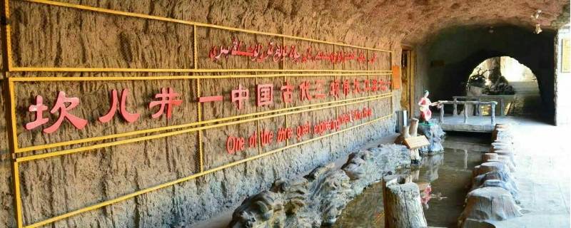 坎儿井位于新疆维吾尔族自治区吐鲁番地区。坎儿井,又称坎尔井,是荒漠地区一特殊灌溉系统,与万里长城、京杭大运河并称为中国古代三大工程。