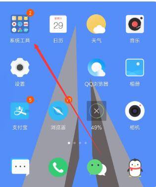 1、打开三星S8手机桌面,找到系统工具,如下图所示: