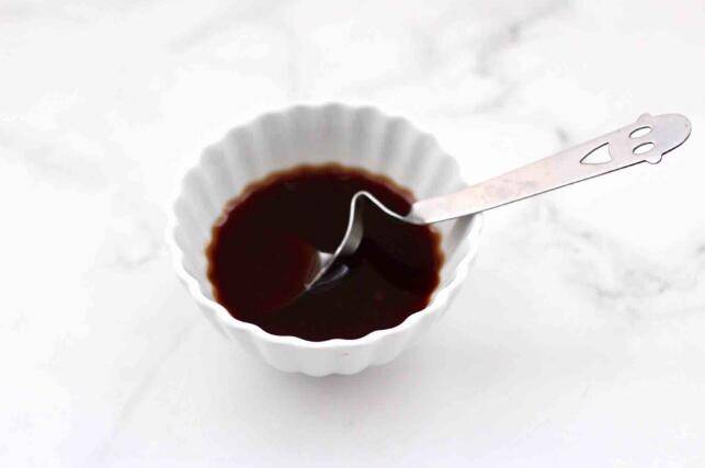 4、调制料汁:碗里放入白糖、盐、生抽、甜面酱、番茄酱、清水,混合搅拌均匀备用。