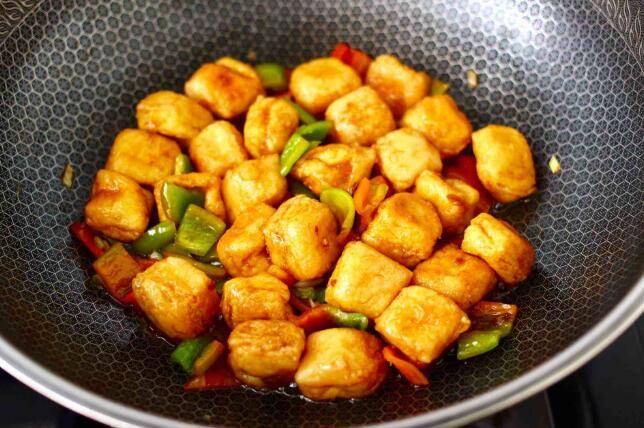 主料:包浆豆腐、辣椒、白糖、生抽、蕃茄酱、小葱、花生油。辅料:盐、淀粉。