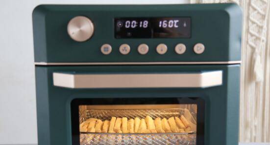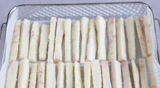 4、把山药条放在空气炸箱的中下层,开启160度空炸20分钟即可出炉。