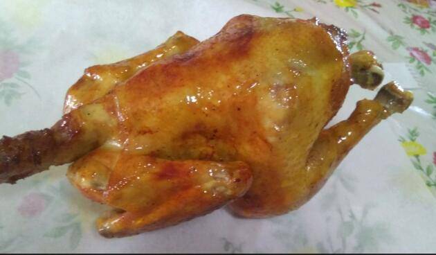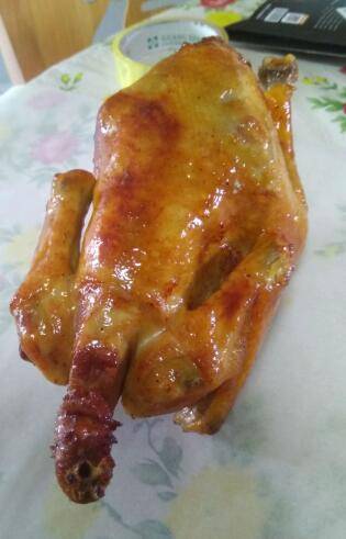 1、准备食材:姜1块、蒜1个、大葱1根、生抽、老抽、料酒、盐、冰糖3块。2、把整只鸡腌制过夜。3、先蒸熟全鸡,再上架子烤。4、烤干身之后涂一遍糖水即可。