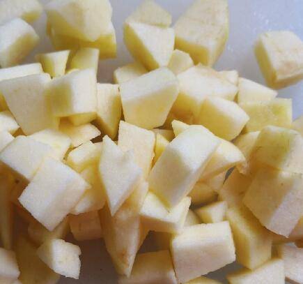 2、柠檬半个,苹果刮皮,切块。