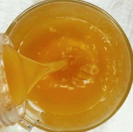 4、打成汁,将苹果汁倒入杯子里,加蜂蜜即可饮用。
