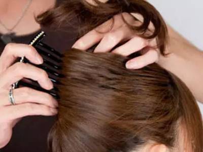 2、用梳子高高梳整齐,马尾顺时针扭成一团。