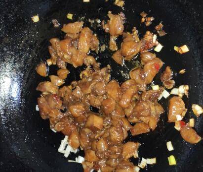 2、鸡块煸出水分以后,更容易吸收料入味。