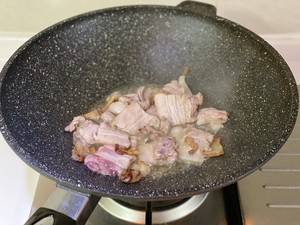 2、五花肉炒出油。
