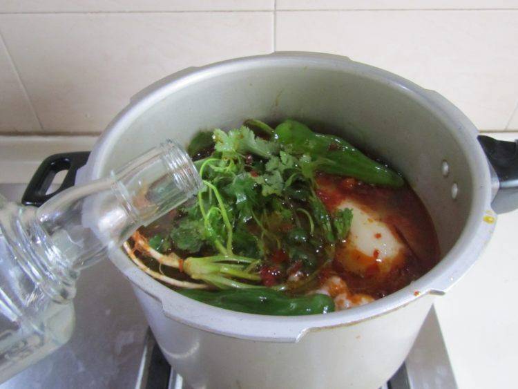 5、盖上盖,大火高压锅阀叫了后转为小火炖煮25分钟。