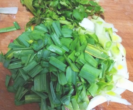蒜苗清洗干净,切成小段;