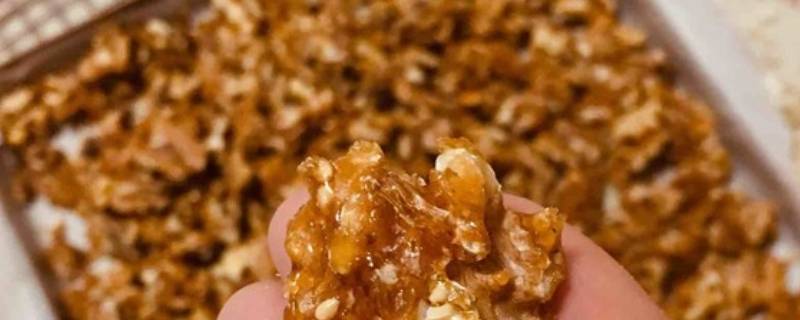 最佳答案主料:山核桃仁300克、冰糖150克、水100克、麦芽糖50克、熟白芝麻适量。1、将冰糖,水,麦芽糖放入不粘锅中。2、先开大火将锅里的液体煮开,但是不用搅拌。3、冰糖这时候差不多化了转小火继续煮。4、从大泡煮到小泡,并且有焦糖色了,就可以加入核桃仁和白芝麻,翻拌均匀。5、基本上每个核桃仁上蘸...