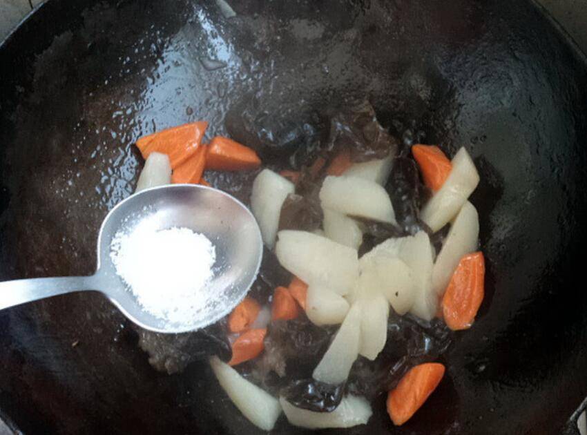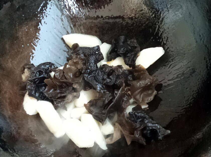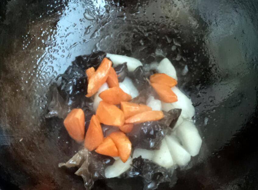 主料:木耳50克、山药150克、胡萝卜150克、橄榄油适量、盐适量、味精适量、葱姜适量。
