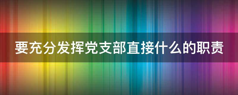 要充分发挥党支部直接发挥教育党员、管理党员、监督党员的职责作用。按照党的十九大要求,充分发挥党支部的作用,让党支部担负好直接教育党员、管理党员、监督党员和组织群众、官传群众、凝聚群众、服务群众的职责。以突出政治功能为着力点,健全完善基层党组织组织领导、宣传教育、推动发展、服务群众、民主管理五个体系,提升基层党组织的政治领导力、组织覆盖力、群众凝聚力、社会号召力、发展推动力,有效发挥党的领导核心作用。