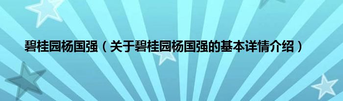 本文关于碧桂园杨国强的基本详情介绍就讲解完毕,希望对大家有所帮助。