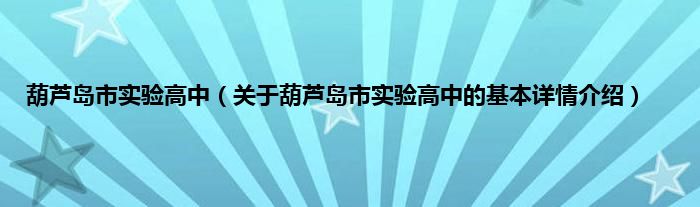 葫芦岛市实验高中(关于葫芦岛市实验高中的基本详情介绍)