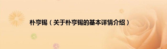 朴亨锡(关于朴亨锡的基本详情介绍)