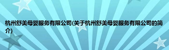 本文关于杭州舒美母婴服务有限公司的简介就讲解完毕,希望对大家有所帮助。