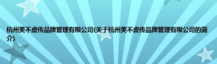 本文关于杭州美不虚传品牌管理有限公司的简介就讲解完毕,希望对大家有所帮助。