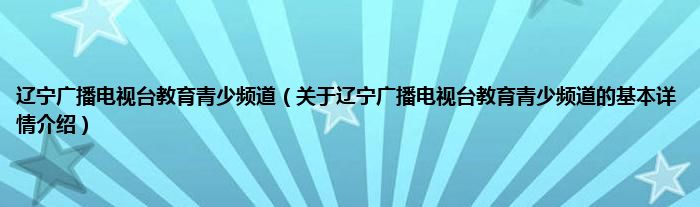 辽宁广播电视台教育青少频道(关于辽宁广播电视台教育青少频道的基本详情介绍)