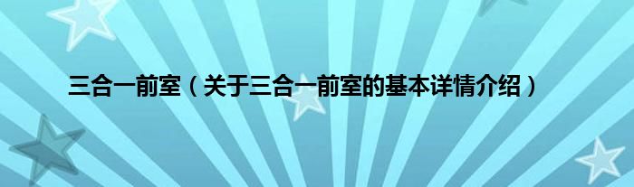 本文关于三合一前室的基本详情介绍就讲解完毕,希望对大家有所帮助。