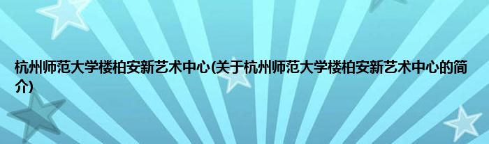 大家好,杭州师范大学楼柏安新艺术中心,关于杭州师范大学楼柏安新艺术中心的简介很多人还不知道,现在让我们一起来看看吧!