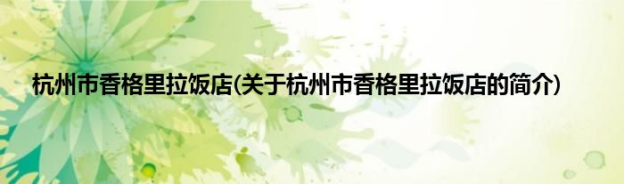杭州市香格里拉饭店(关于杭州市香格里拉饭店的简介)