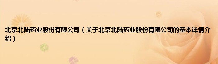 本文关于北京北陆药业股份有限公司的基本详情介绍就讲解完毕,希望对大家有所帮助。