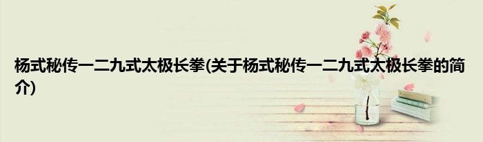 本文关于杨式秘传一二九式太极长拳的简介就讲解完毕,希望对大家有所帮助。