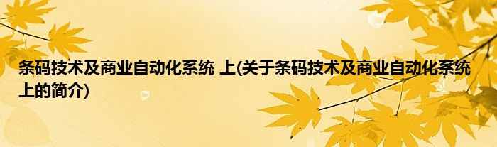 大家好,条码技术及商业自动化系统 上,关于条码技术及商业自动化系统 上的简介很多人还不知道,现在让我们一起来看看吧!