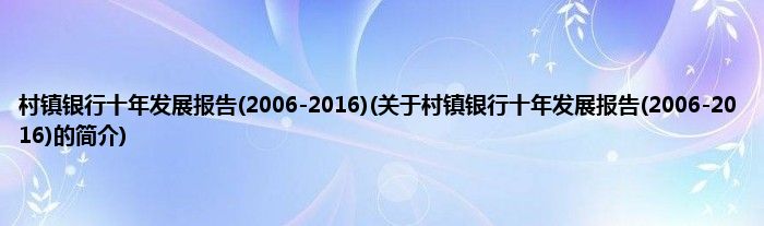 本文关于村镇银行十年发展报告(2006-2016)的简介就讲解完毕,希望对大家有所帮助。