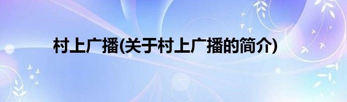 本文关于村上广播的简介就讲解完毕,希望对大家有所帮助。