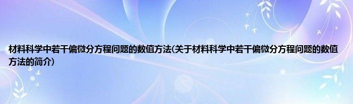 大家好,材料科学中若干偏微分方程问题的数值方法,关于材料科学中若干偏微分方程问题的数值方法的简介很多人还不知道,现在让我们一起来看看吧!