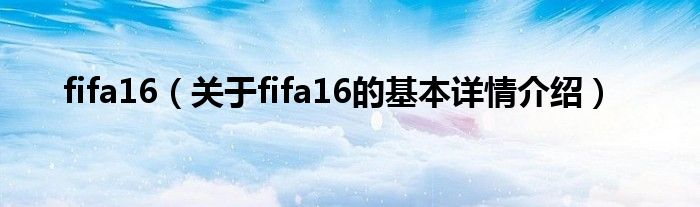 本文关于fifa16的基本详情介绍就讲解完毕,希望对大家有所帮助。