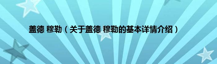 本文关于盖德 穆勒的基本详情介绍就讲解完毕,希望对大家有所帮助。