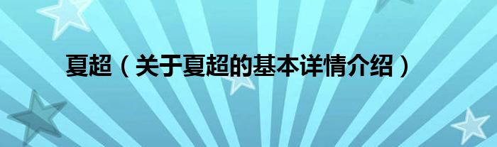 本文关于夏超的基本详情介绍就讲解完毕,希望对大家有所帮助。
