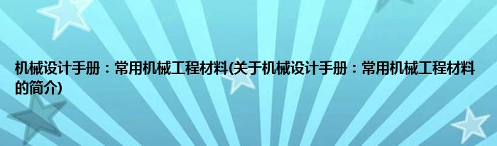 本文关于机械设计手册:常用机械工程材料的简介就讲解完毕,希望对大家有所帮助。