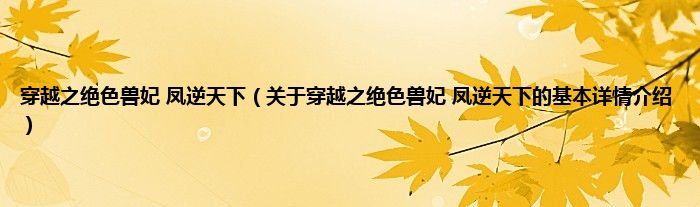 本文关于穿越之绝色兽妃 凤逆天下的基本详情介绍就讲解完毕,希望对大家有所帮助。