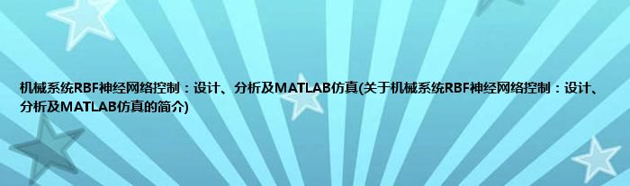 机械系统RBF神经网络控制:设计、分析及MATLAB仿真(关于机械系统RBF神经网络控制:设计、分析及MATLAB仿真的简介)