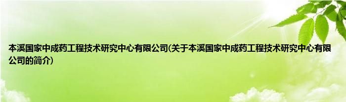 本文关于本溪国家中成药工程技术研究中心有限公司的简介就讲解完毕,希望对大家有所帮助。