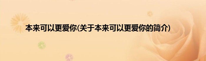 大家好,本来可以更爱你,关于本来可以更爱你的简介很多人还不知道,现在让我们一起来看看吧!