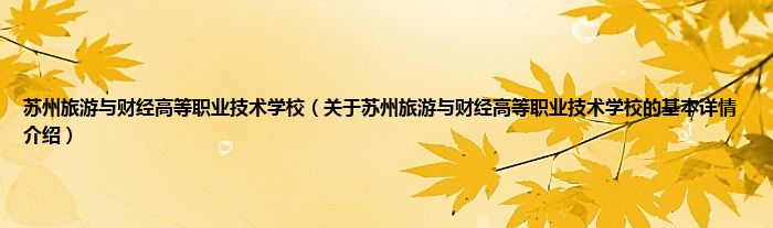 本文关于苏州旅游与财经高等职业技术学校的基本详情介绍就讲解完毕,希望对大家有所帮助。