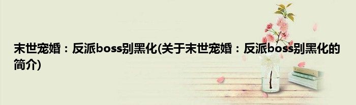 本文关于末世宠婚:反派boss别黑化的简介就讲解完毕,希望对大家有所帮助。