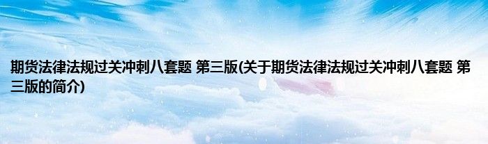 本文关于期货法律法规过关冲刺八套题 第三版的简介就讲解完毕,希望对大家有所帮助。