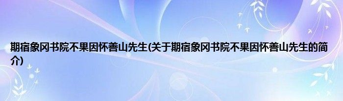 大家好,期宿象冈书院不果因怀善山先生,关于期宿象冈书院不果因怀善山先生的简介很多人还不知道,现在让我们一起来看看吧!