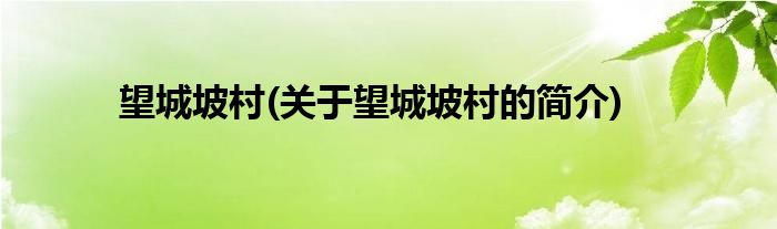 本文关于望城坡村的简介就讲解完毕,希望对大家有所帮助。