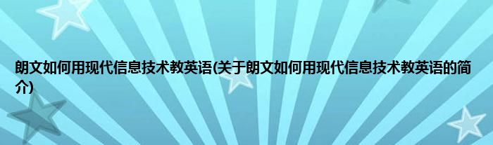 本文关于朗文如何用现代信息技术教英语的简介就讲解完毕,希望对大家有所帮助。