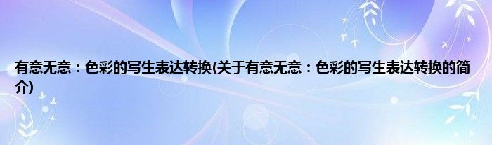 大家好,有意无意:色彩的写生表达转换,关于有意无意:色彩的写生表达转换的简介很多人还不知道,现在让我们一起来看看吧!